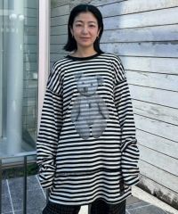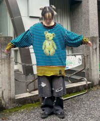 パンキッシュなベアのぬいぐるみのフォトプリントがインパクト大なトップス。 ユニセックスでご着用いただけるオーバーシルエットに仕上げました。 切り替えのステッチは配色にすることでアクセントをプラス。 ニューレトロなビビットなカラーリングのライトブルー×ブラック・ピンク×ブラック、 コーディネートに取り入れやすいオフホワイト×ブラックの3色をご用意。 トップスとしてはもちろん、1枚でワンピース風の着こなしもオススメ。 ・・・・・・・・・・・・・・・・・・・・・・ ・透け感:なし ・伸縮性:あり ・生地の厚さ:普通 ・裏地:なし ・・・・・・・・・・・・・・・・・・・・・・