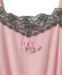 肌触りの良いエステルポンチ素材を使用した、着心地抜群なキャミソール。 胸元のチュールレースと、共地で作られたバラモチーフがポイント。 肩紐は調節可能で、お好みの長さで着用いただけます。 同素材を使用したショートパンツとのコーディネートもおすすめです◎ ※濃色は汗・水分や摩擦により色移りする恐れがありますのでご注意ください ・・・・・・・・・・・・・・・・・・・・・・ ・透け感:なし ・伸縮性:あり ・生地の厚さ:やや薄手 ・裏地:なし ・・・・・・・・・・・・・・・・・・・・・・