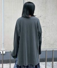 クラックアレンジを加えたロゴをプリントしたトップス。 ピグメント加工を施したドライタッチで軽やかな質感の16/-天竺を使用。 サイドスリットを入れることで抜け感をプラスし小慣れ感のある印象に。 腰回りをカバーできるように後の着丈を長く仕上げています。 前側をボトムにインした着こなしもオススメです。 トップスはもちろん、ジャケットやブルゾンのインナーにも最適。 シーズンレスでご着用いただけるアイテムです。 ・・・・・・・・・・・・・・・・・・・・・・ ・透け感:あり ・伸縮性:なし ・生地の厚さ:普通 ・裏地:あり ・・・・・・・・・・・・・・・・・・・・・・