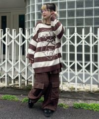 双子のテディベア柄が目を惹くボーダーニット。 合わせやすい組み合わせのボーダー配色がポイント。 着心地の良いコットンアクリル糸を使用。程良い厚みで着心地も◎ 厚すぎず、薄すぎない着やすい肉厚感の7ゲージを採用。 ルーズなビッグシルエットで、ずるっと着こなすのがおすすめです。 ・・・・・・・・・・・・・・・・・・・・・・ ・透け感:なし ・伸縮性:あり ・生地の厚さ:普通 ・裏地:なし ・・・・・・・・・・・・・・・・・・・・・・