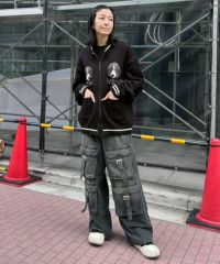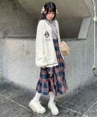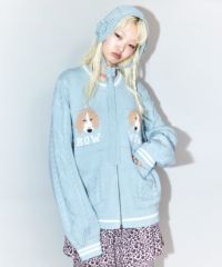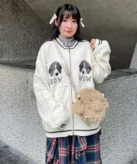 きょとんとした表情のわんちゃん達がキャッチーな、カレッジ風のニットカーディガン。 ざくざくと編まれたルーズシルエット仕上げで、アウターカーディガンとしてさっと羽織っていただける一着です。 わんちゃんのモチーフはあえて低い位置に編まれているため、襟付きトップスなどとのレイヤードスタイルも楽しんでいただけます。 素材はコットン・アクリルの混紡糸を使用しており、しなやかで優しい肌ざわり。 ファスナーはWジップ仕様で、骨の形のチャームをお付けしております。 ・・・・・・・・・・・・・・・・・・・・・・ ・透け感:なし ・伸縮性:あり ・生地の厚さ:普通 ・裏地:なし ・・・・・・・・・・・・・・・・・・・・・・