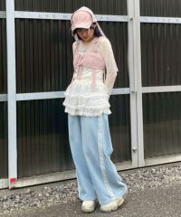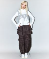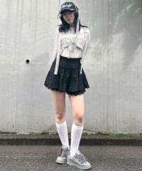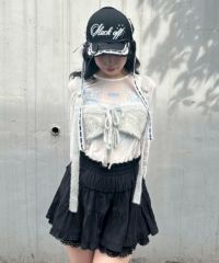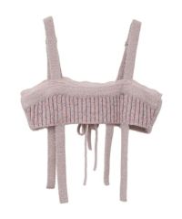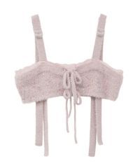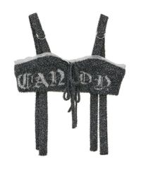 ラメシャギー糸を使用した、キラキラ、ふわふわのニットブラ。 よく見ると、トレンド感のあるブラックレターロゴで”CANDY”と編まれているのがポイントです。 ロゴと背面にはミックスカラーの糸を使用し、グランジ感のある雰囲気に仕上げました。 フロントの紐は、そのまま垂らしてもOK、ブラ本体の内側に通してもOKの2way仕様です。 スタイリングを格上げしてくれる、アイキャッチーなアイテムです。 ・・・・・・・・・・・・・・・・・・・・・・ ・透け感:なし ・伸縮性:あり ・生地の厚さ:普通 ・裏地:なし ・・・・・・・・・・・・・・・・・・・・・・
