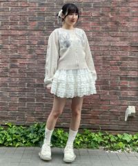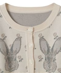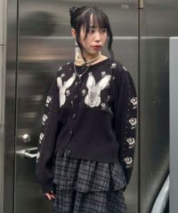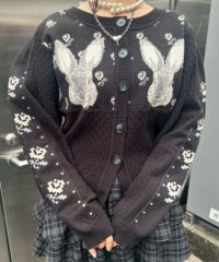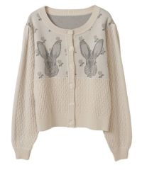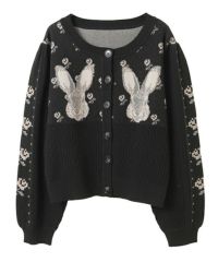うさぎさんのお顔が左右に編まれた、ガーリーなニットカーディガン。 肩部分にギャザーを寄せて、カジュアルすぎないシルエットに仕上げました。 やや短めの丈感で、スタイルアップ効果も期待できます。 羽織りとしてはもちろん、ボタンを閉めてトップスとしてもご着用いただけるサイズ感で、 さまざまなアイテムと相性の良いデザインです。 糸はコットン・アクリル混紡素材のものを使用しており、やさしい肌ざわり。肌寒い季節の味方になる一着です。 ・・・・・・・・・・・・・・・・・・・・・・ ・透け感:なし ・伸縮性:あり ・生地の厚さ:普通 ・裏地:なし ・・・・・・・・・・・・・・・・・・・・・・