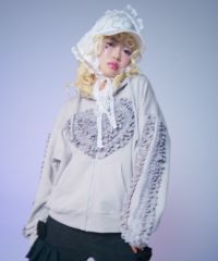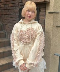 ふにゃりと歪んだハート型のフリルがポイントのフーディーです。