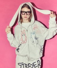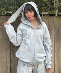 落書き風タッチで描かれたPEPEたちがポイントの、うさ耳フーディーです。 ランダムに配置したかすれプリントで、グランジ/ストリートな雰囲気を楽しんでいただけます。 ルーズすぎずコンパクトすぎないサイズ感で、ミニボトムともロングボトムとも合わせやすいお作り。 柔らかい裏毛生地を使用しており、楽にご着用いただける一点です。 『(1259703)GRAFFITI PRINT PANTS』とのセットアップご着用もおすすめです! ・ ・・・・・・・・・ ・・・・・・・・ ・透け感:なし ・伸縮性:あり ・生地の厚さ:普通 ・裏地:なし ・ ・・・・・・・・・ ・・・・・・・・