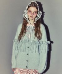 毛足のあるシャギー糸を、全体に使用したニットカーディガン。 ずらりと並んだリボンがアイキャッチーな一点です。 襟ぐりはVネックですっきりと仕上げ、さまざまなテイストと相性の良いシルエットに仕上げました。 いつものスタイリングにサッと羽織っていただきやすい、万能アイテムです。 ・ ・・・・・・・・・ ・・・・・・・・ ・透け感:なし ・伸縮性:あり ・生地の厚さ:普通 ・裏地:なし ・ポケット:なし ・ ・・・・・・・・・ ・・・・・・・・