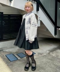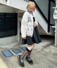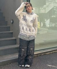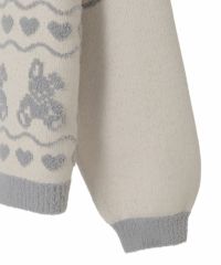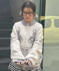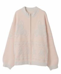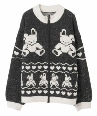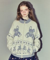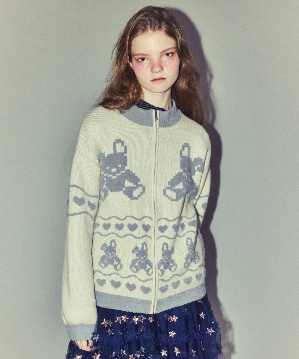 もこもこのスフレヤーンで編まれたうさぎモチーフがポイントの、ニットトラックジャケットです。