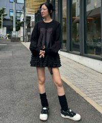 上品な光沢感のあるマットサテンのビスチェをドッキングしたカーディガン。 ニット部分はふんわり柔らかな編み地で着心地◎。 裾に向かってレースを重ねてボリュームを持たせることでウエスト・腰回りをカバー。 袖口はリブ仕様、袖はボリュームを持たせたパフスリーブに仕上げました。 ショート丈のボトムはもちろん、フレアパンツやデニムとの組み合わせも◎ トレンド感のあるガーリーな着こなしにぴったりです。 ・ ・・・・・・・・・ ・・・・・・・・ ・透け感:なし ・伸縮性:あり ・生地の厚さ:普通 ・裏地:なし ・ ・・・・・・・・・ ・・・・・・・・