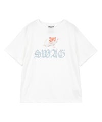 ◯自信ありげな雰囲気のハムスターが印象的な、"SWAG"ロゴ入りTシャツ ◯生地に染み込ませた、柔らかな風合いのプリント手法を採用 ◯26/-天竺生地を使用したオリジナルボディ ◯やわらかいコットン100%の生地を使用し着心地も抜群! ◯サイズレンジが幅広く、お好みのサイズ感を選んで着用していただけます