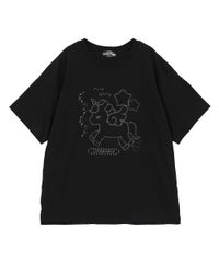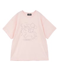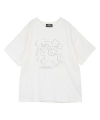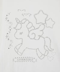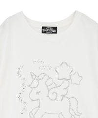 ◯全体に吹き付けられたラメと、ユニコーンのアスキーアートがキュートなBIG Tシャツ ◯26/-天竺生地を使用したオリジナルボディ ◯やわらかいコットン100%の生地を使用し着心地も抜群 ◯ヒップラインも隠れる安心感のある丈 ◯様々な着こなしに対応できる適度なビッグシルエット ◯ユニセックスで着こなしが楽しめるデザイン