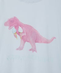◯おもちゃの恐竜がアイスクリームを楽しむ様子がユニークな一着 ◯夏らしい明るいお色味のグラフィックで、デイリーに着こなしやすいデザイン ◯26/-天竺生地を使用したオリジナルボディ ◯やわらかいコットン100%の生地を使用し着心地も抜群 ◯ヒップラインも隠れる安心感のある丈 ◯様々な着こなしに対応できる適度なビッグシルエット ◯ユニセックスで着こなしが楽しめるデザイン