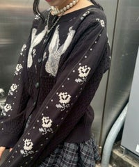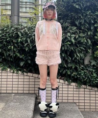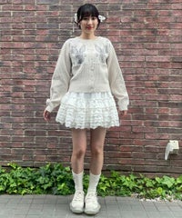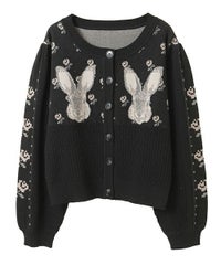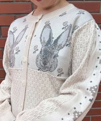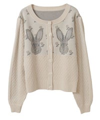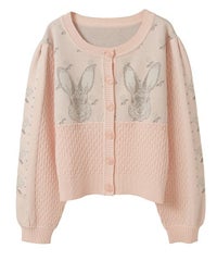 うさぎさんのお顔が左右に編まれた、ガーリーなニットカーディガン。 肩部分にギャザーを寄せて、カジュアルすぎないシルエットに仕上げました。 やや短めの丈感で、スタイルアップ効果も期待できます。 羽織りとしてはもちろん、ボタンを閉めてトップスとしてもご着用いただけるサイズ感で、 さまざまなアイテムと相性の良いデザインです。 糸はコットン・アクリル混紡素材のものを使用しており、やさしい肌ざわり。肌寒い季節の味方になる一着です。 ・・・・・・・・・・・・・・・・・・・・・・ ・透け感:なし ・伸縮性:あり ・生地の厚さ:普通 ・裏地:なし ・・・・・・・・・・・・・・・・・・・・・・