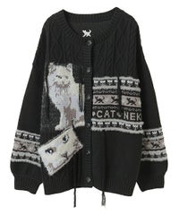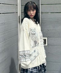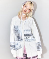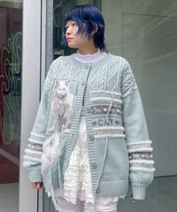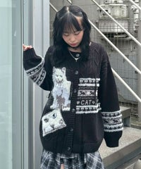 猫ちゃんへの愛をたっぷりと詰め込んだ、ルーズなサイズ感のニットカーディガン。 身頃部分から垂れた糸やシャギー糸でグランジ感をプラスした、ひと癖ある一着です。 淡いお色味でお作りしている為、インパクトの強い柄ですが、デイリーでご着用いただきやすい仕上がりになっております。 コットン・アクリルの混紡糸を使用しており、優しく扱いやすい素材感もポイントです?? ・・・・・・・・・・・・・・・・・・・・・・ ・透け感:なし ・伸縮性:あり ・生地の厚さ:普通 ・裏地:なし ・・・・・・・・・・・・・・・・・・・・・・