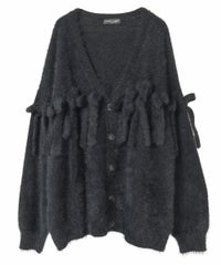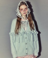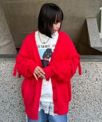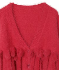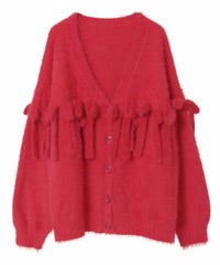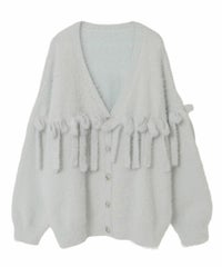 毛足のあるシャギー糸を、全体に使用したニットカーディガン。 ずらりと並んだリボンがアイキャッチーな一点です。 襟ぐりはVネックですっきりと仕上げ、さまざまなテイストと相性の良いシルエットに仕上げました。 いつものスタイリングにサッと羽織っていただきやすい、万能アイテムです。 ・ ・・・・・・・・・ ・・・・・・・・ ・透け感:なし ・伸縮性:あり ・生地の厚さ:普通 ・裏地:なし ・ポケット:なし ・ ・・・・・・・・・ ・・・・・・・・