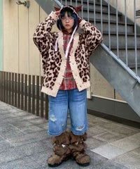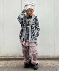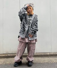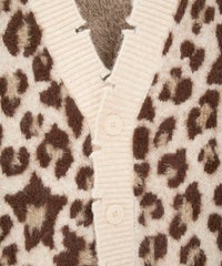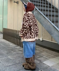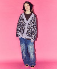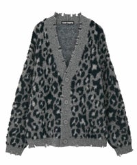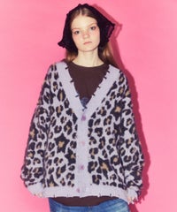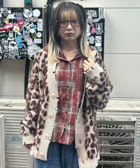 オリジナルのレオパードパターンをジャガードで表現したニットカーディガン。 オーバーシルエットなサイジングでユニセックスでご着用いただけます。 起毛感のある柔らかい質感の糸を使用し肌触りも◎ リブにはダメージ加工を入れてパンキッシュなアクセントをプラス。 トップスとしてはもちろん、ライトなアウターとしても最適。 ダメージデニムやチェックシャツを合わせた グランジテイストな着こなしもオススメです。 ・ ・・・・・・・・・ ・・・・・・・・ ・透け感:なし ・伸縮性:あり ・生地の厚さ:普通 ・裏地:なし ・ ・・・・・・・・・ ・・・・・・・・