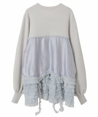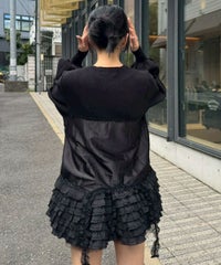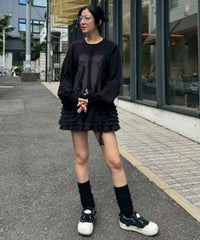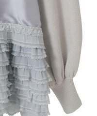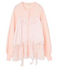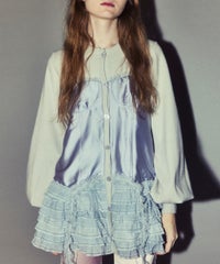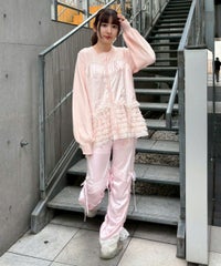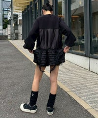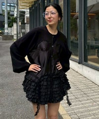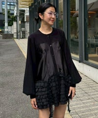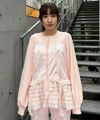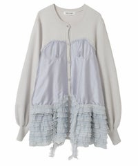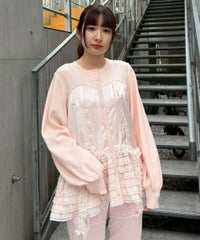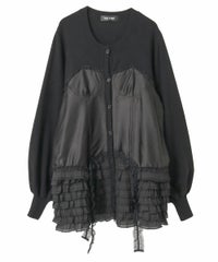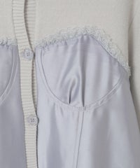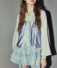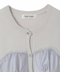 上品な光沢感のあるマットサテンのビスチェをドッキングしたカーディガン。 ニット部分はふんわり柔らかな編み地で着心地◎。 裾に向かってレースを重ねてボリュームを持たせることでウエスト・腰回りをカバー。 袖口はリブ仕様、袖はボリュームを持たせたパフスリーブに仕上げました。 ショート丈のボトムはもちろん、フレアパンツやデニムとの組み合わせも◎ トレンド感のあるガーリーな着こなしにぴったりです。 ・ ・・・・・・・・・ ・・・・・・・・ ・透け感:なし ・伸縮性:あり ・生地の厚さ:普通 ・裏地:なし ・ ・・・・・・・・・ ・・・・・・・・