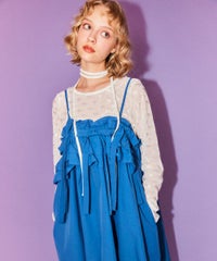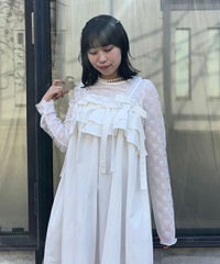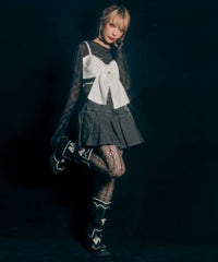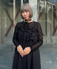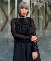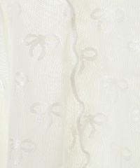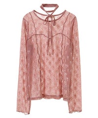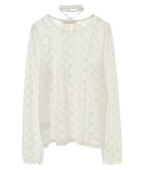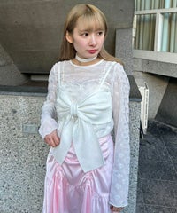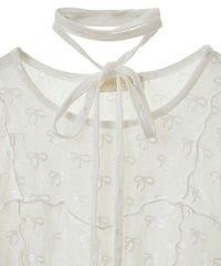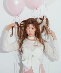 程よくストレッチの効いたリボン柄のストレッチチュールを使用したシースルートップス。 合わせやすいラウンドネックデザイン。 同素材で作られたチョーカー付き。首に巻きつけることで今季のムードを取り入れられるアイテム。 身頃のランジェリーライクなメロー切り替えで女性らしさをプラス。 程よいタイトなシルエットで1枚ではもちろん、レイヤードアイテムとしても最適。 春のアクセントカラーに最適なピンク、 ジャンルレスで活躍するオフホワイト・ブラックの3色をご用意。 カジュアルガーリーな着こなしに最適です。
