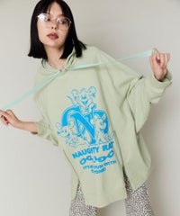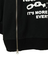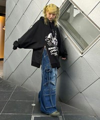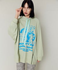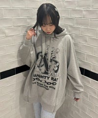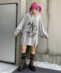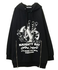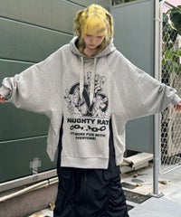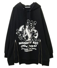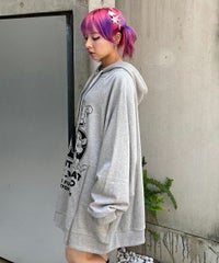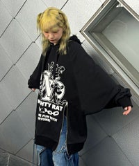 アメコミタッチのラットモチーフと「CND」ロゴを組み合わせた グラフィックがインパクト大なフーディー。 薄手の裏毛素材を使用し軽やかな着心地に仕上げています。 前身頃にはファスナー付きで開閉が可能なのでスタイリングに合わせて お好みでご調整いただけます。 オーバーサイズなアイテムなのでトップスとしてはもちろん、 低身長な方は1枚でワンピース風な着こなしもお楽しみいただけます。 ストリートスタイルにぴったりなアイテムです。