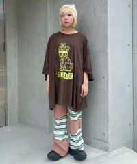 パンキッシュなドッグモチーフのグラフィックがインパクト大なラグラントップス。 程よい肉感と軽やかさのある20/-天竺を使用しており着心地も◎ オーバシルエットなサイズ感でユニセックスでご着用いただけます。 トップスとしてはもちろん、1枚でワンピース風の着こなしもオススメ。 ストリートスタイルにぴったりなアイテムです。
