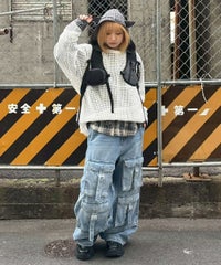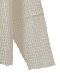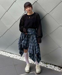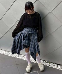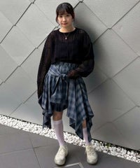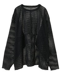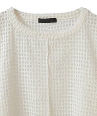 チュールにモール糸を格子状にして乗せた素材を使用したシアー感のあるトップス。 オーバーシルエットに仕上げユニセックスな雰囲気に。 タンクトップやキャミソールの上から重ね着し肌見せした着こなしはもちろん、 Tシャツやニットのインナーにして袖や裾から見せても◎ スタイリングのアクセントになる万能アイテムです。 ・・・・・・・・・・・・・・・・・・・・・・ ・透け感:あり ・伸縮性:ややあり ・生地の厚さ:薄い ・裏地:なし ・・・・・・・・・・・・・・・・・・・・・・