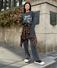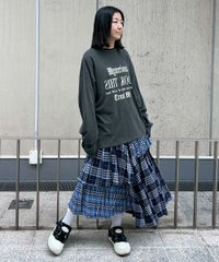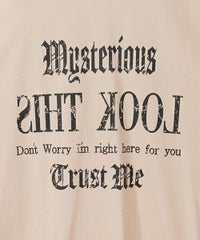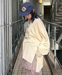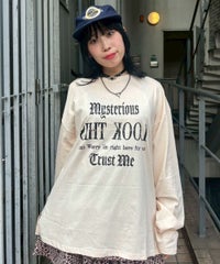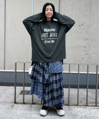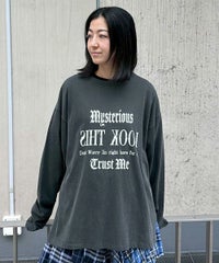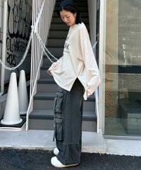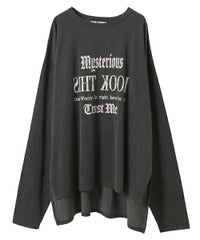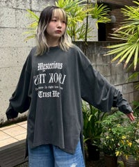 クラックアレンジを加えたロゴをプリントしたトップス。 ピグメント加工を施したドライタッチで軽やかな質感の16/-天竺を使用。 サイドスリットを入れることで抜け感をプラスし小慣れ感のある印象に。 腰回りをカバーできるように後の着丈を長く仕上げています。 前側をボトムにインした着こなしもオススメです。 トップスはもちろん、ジャケットやブルゾンのインナーにも最適。 シーズンレスでご着用いただけるアイテムです。 ・・・・・・・・・・・・・・・・・・・・・・ ・透け感:あり ・伸縮性:なし ・生地の厚さ:普通 ・裏地:あり ・・・・・・・・・・・・・・・・・・・・・・