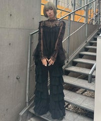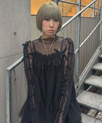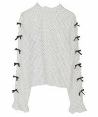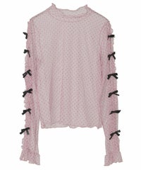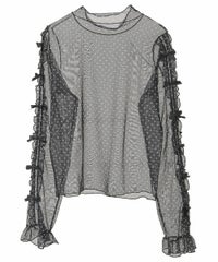 ストレッチの効いたチュールに オリジナルカラーのドットをプリントしたタートルトップス。 センシュアルなシアー感が女性らしい雰囲気を演出します。 両袖にはフリル&リボンを施しアクセントをプラス。 バランスが良く見えるように着丈はやや短めに仕上げました。 一捻り欲しい時にぴったりなトップスです。 ・ ・・・・・・・・・ ・・・・・・・・ ・透け感:あり ・伸縮性:あり ・生地の厚さ:薄手 ・裏地:なし ・ ・・・・・・・・・ ・・・・・・・・
