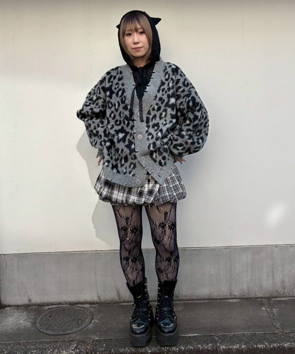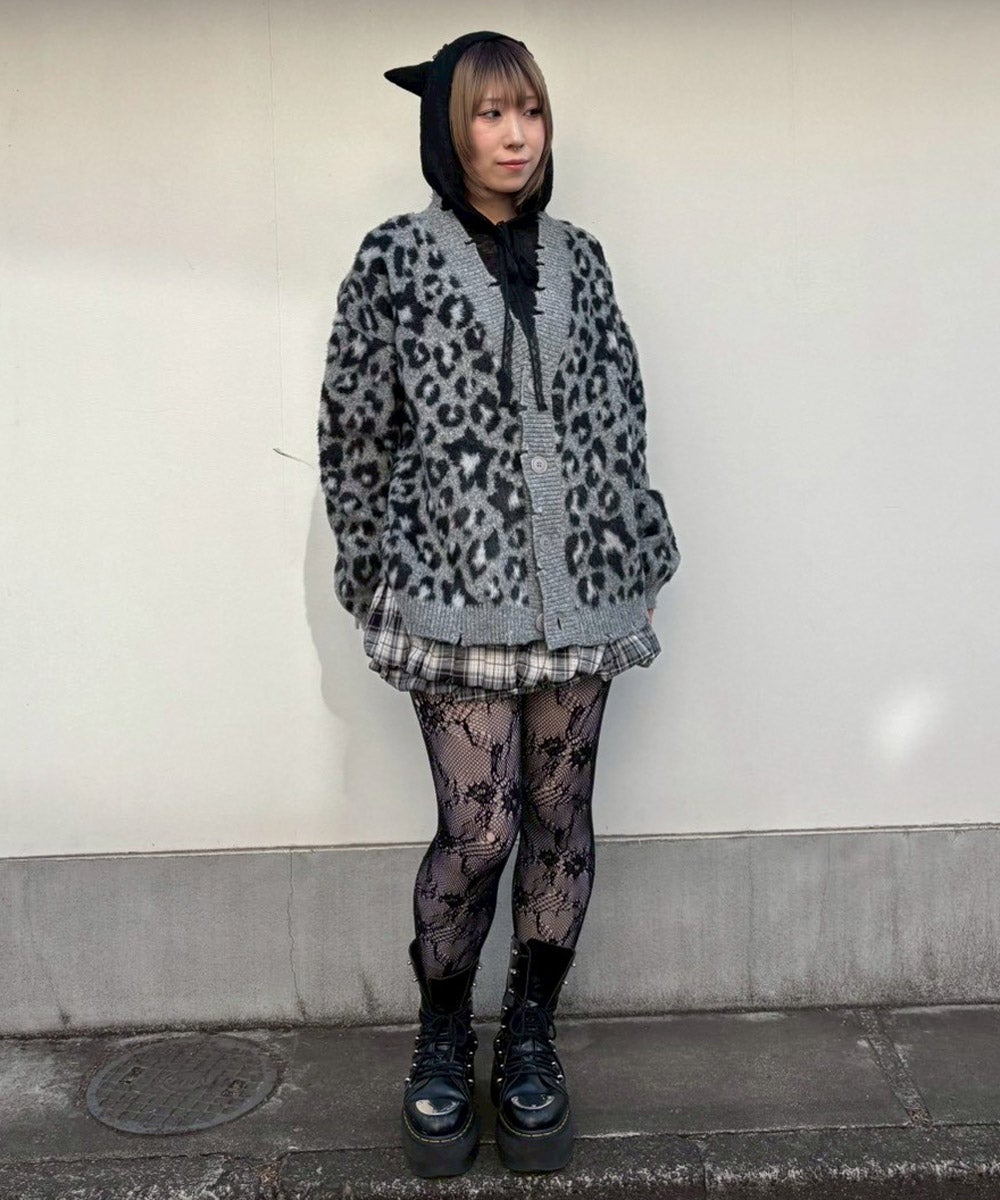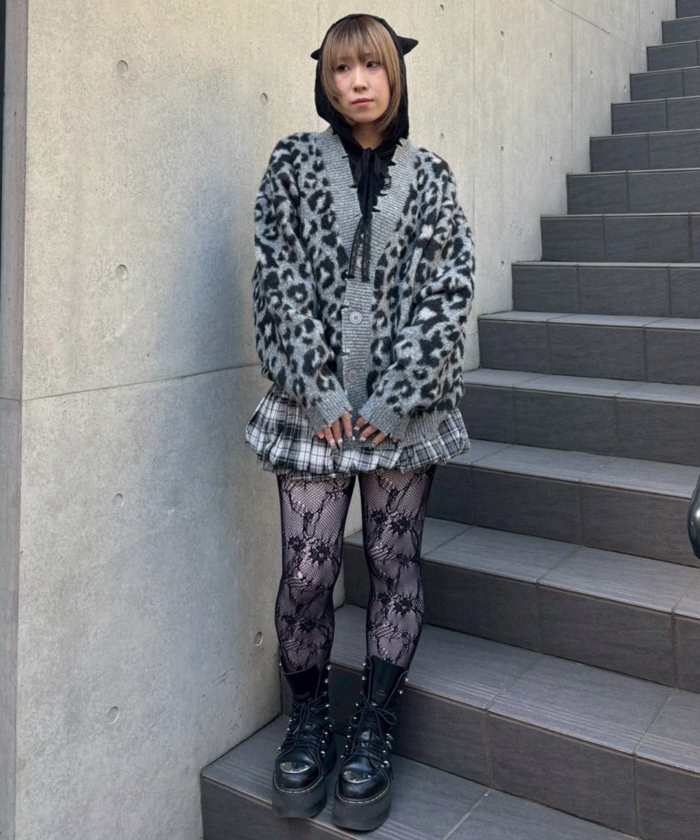 FLUFFY STAR LEOPARD KNIT CARDIGAN