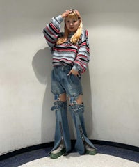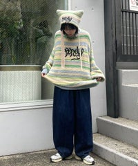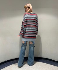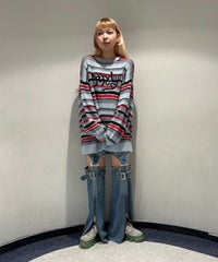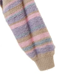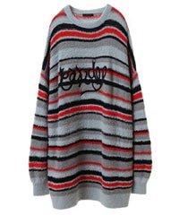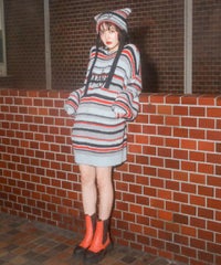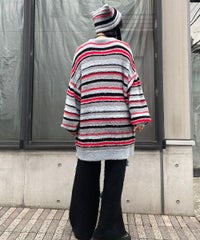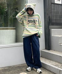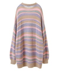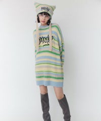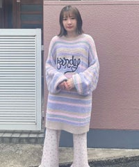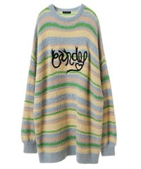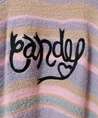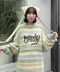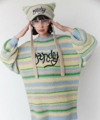 ロリポップのようなカラーリングがキュートなマルチボーダーニット。 ふわふわした軽やかな糸を使用し、着心地も抜群◎ 同カラー展開のビーニーと合わせたコーディネートもおすすめ。 フロントにはガーリーなCANDYロゴを刺繍しました。 ※伸びやすい糸のため、ハンガーを使用せずたたんで保管することをおすすめします。