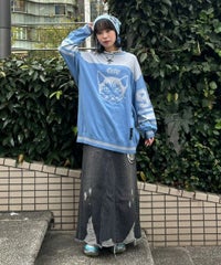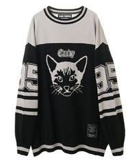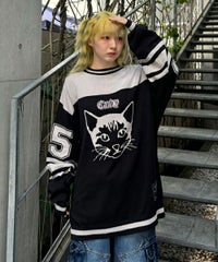 ナンバリンググラフィックをジャガードで表現したニットプルオーバー。コットン・アクリルの混紡糸を使用しており柔らかくしなやかな肌触り。細番手を使用してハイゲージで編み立てた程よい肉感で、シーズンレスに着用可能。ワイドシルエットのボトムを組みわせてストリートな着こなしがオススメ。程よいオーバーシルエットでユニセックスでお楽しみいただけます。