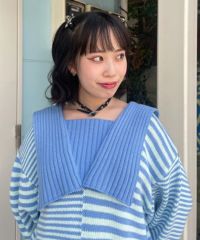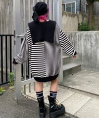 太さの異なるボーダーを組み合わせたセーラーカラーニット。裾・袖口リブに細かめのダメージ加工を施しパンキッシュなアクセントをプラス。左下に付いている「CND」ロゴの織りネームもポイント。程よいオーバーシルエットなサイジングでユニセックスでお楽しみいただけます。スタイリングのアクセントに最適なMINT×LIGHT BLUE・PINK×LIGHT PINKのボーダーとモードな雰囲気のBLACK×OFF WHITEボーダーの3色をご用意。同じ織りネームを使用したビーニーを組み合わせていただくのもオススメ。キャンディらしい遊び心の効いた1枚をお楽しみください。