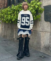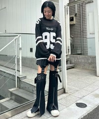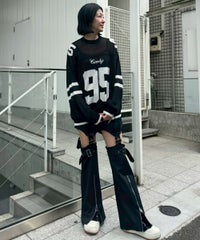 インターシャ編みで表現したナンバリングニット。 透け感のある軽やかな編み地に仕上げました。 程よくゆとりを持たせたオーバーシルエットで小慣れ感を演出。 タンクトップやキャミソールの上から重ねて肌見せの着こなしはもちろん、 ロンTやシャツの上から重ねて秋らしいレイヤードスタイルもお楽しみいただけます。 チェック柄のアイテムやダメージデニムを組み合わせたグランジテイストなスタイリングもオススメ。 秋口のレイヤードスタイルに最適なアイテムです。 ・・・・・・・・・・・・・・・・・・・・・・ ・透け感:あり ・伸縮性:あり ・生地の厚さ:薄い ・裏地:なし ・・・・・・・・・・・・・・・・・・・・・・