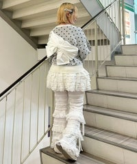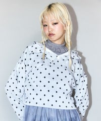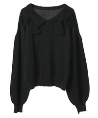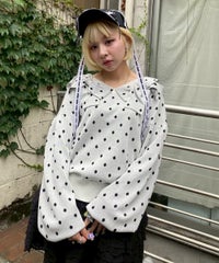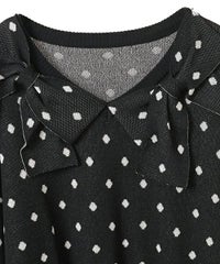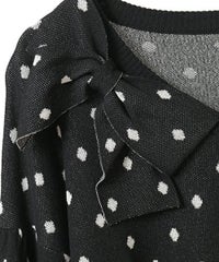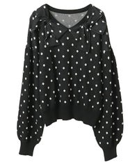 襟部分にふたつのリボンをあしらったニットトップス。 やや薄手ですが編み地がしっかりと詰まっており、スウェット感覚でご着用可能な一着です。 レーヨン・ナイロン素材の混紡糸使用で、さらっと滑らかな肌ざわり。暑い秋にも涼しく着用していただけます。 トレンド感のあるドット柄2色と、合わせやすい無地1色のご用意で、さまざまなスタイリングを楽しんでいただけるトップスです。 ※無地は、リボン部分のみあえてゆるい度目で編まれておりますが、デザインです。 ※水玉の2色は、身頃と同じ質感のリボンで仕上げております。 ・・・・・・・・・・・・・・・・・・・・・・ ・透け感:なし ・伸縮性:あり ・生地の厚さ:普通 ・裏地:なし ・・・・・・・・・・・・・・・・・・・・・・