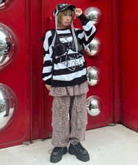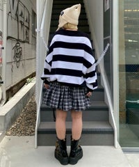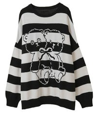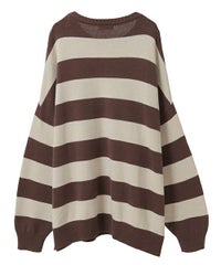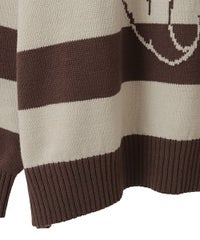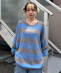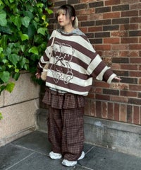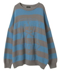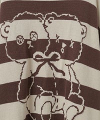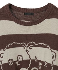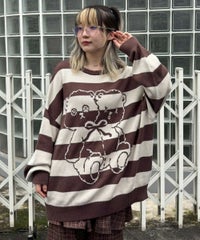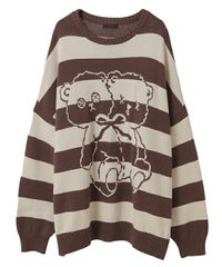 双子のテディベア柄が目を惹くボーダーニット。 合わせやすい組み合わせのボーダー配色がポイント。 着心地の良いコットンアクリル糸を使用。程良い厚みで着心地も◎ 厚すぎず、薄すぎない着やすい肉厚感の7ゲージを採用。 ルーズなビッグシルエットで、ずるっと着こなすのがおすすめです。 ・・・・・・・・・・・・・・・・・・・・・・ ・透け感:なし ・伸縮性:あり ・生地の厚さ:普通 ・裏地:なし ・・・・・・・・・・・・・・・・・・・・・・