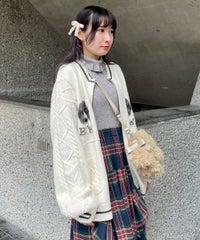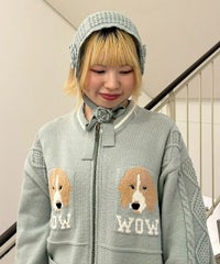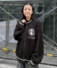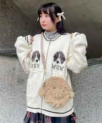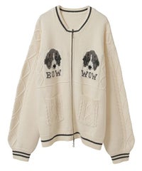 きょとんとした表情のわんちゃん達がキャッチーな、カレッジ風のニットカーディガン。 ざくざくと編まれたルーズシルエット仕上げで、アウターカーディガンとしてさっと羽織っていただける一着です。 わんちゃんのモチーフはあえて低い位置に編まれているため、襟付きトップスなどとのレイヤードスタイルも楽しんでいただけます。 素材はコットン・アクリルの混紡糸を使用しており、しなやかで優しい肌ざわり。 ファスナーはWジップ仕様で、骨の形のチャームをお付けしております。 ・・・・・・・・・・・・・・・・・・・・・・ ・透け感:なし ・伸縮性:あり ・生地の厚さ:普通 ・裏地:なし ・・・・・・・・・・・・・・・・・・・・・・