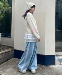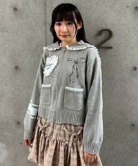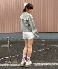 端にレースが施されたセーラー衿がキュートなニットジャンパー。 胸元のアップリケにも繊細なレース生地を使用し、ガーリーな印象に◎ 着心地の良いコットンアクリル糸を使用。 コンパクトなサイジングで、ジャストサイズでの着こなしがおすすめです。 ・・・・・・・・・・・・・・・・・・・・・・ ・透け感:なし ・伸縮性:あり ・生地の厚さ:普通 ・裏地:なし ・・・・・・・・・・・・・・・・・・・・・・