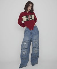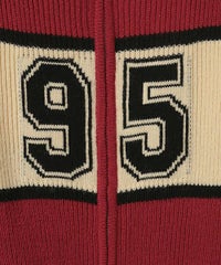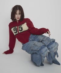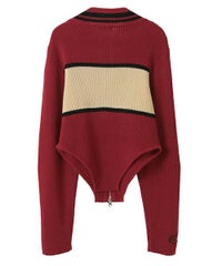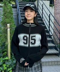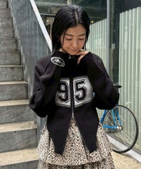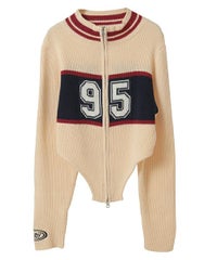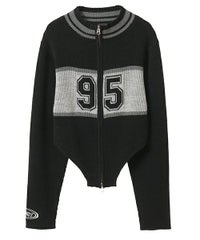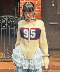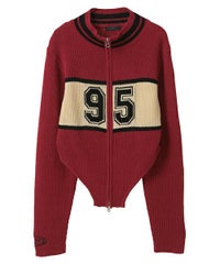 ボディスーツ型のジップブルゾン。 ウエスト部分のカットラインが控えめで程良い肌見せが叶うデザイン。 フロントのナンバリングや、袖口に施されたロゴ刺繍がポイント。 程よくコンパクトなサイズ感で着膨れせず、すっきり着用できるアイテムです。 暖かみのあるアクリルウール糸をリブ編みし、厚すぎない程よい肉感に仕上げています。 ファスナーは両開きで、着こなしに合わせて調節可能。 トレンド感のある着こなしをお楽しみいただけます。 ・・・・・・・・・・・・・・・・・・・・・・ ・透け感:なし ・伸縮性:あり ・生地の厚さ:普通 ・裏地:なし ・・・・・・・・・・・・・・・・・・・・・・
