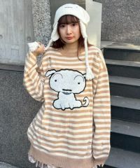 しんちゃんの愛犬シロをサガラ刺繍で表現したニットプルオーバー。 ランダムにダメージ加工を施してアクセントをプラス。 柔らかい肌触りのレーヨン・ポリエステル・ナイロンの混紡糸を使用。 程よい厚みに仕上げることで保温性も◎ 着丈をやや長めにすることで腰回りをカバー&程よくゆとりを持たせ 身体のラインが出にくいオーバーシルエットに仕上げました。 本コラボレーションならではのスペシャルな1枚です。 ・ ・・・・・・・・・ ・・・・・・・・ ・透け感:なし ・伸縮性:あり ・生地の厚さ:普通 ・裏地:なし ・ ・・・・・・・・・ ・・・・・・・・ © 臼井儀人/双葉社・シンエイ・テレビ朝日・ADK