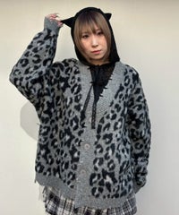 オリジナルのレオパードパターンをジャガードで表現したニットカーディガン。 オーバーシルエットなサイジングでユニセックスでご着用いただけます。 起毛感のある柔らかい質感の糸を使用し肌触りも◎ リブにはダメージ加工を入れてパンキッシュなアクセントをプラス。 トップスとしてはもちろん、ライトなアウターとしても最適。 ダメージデニムやチェックシャツを合わせた グランジテイストな着こなしもオススメです。 ・ ・・・・・・・・・ ・・・・・・・・ ・透け感:なし ・伸縮性:あり ・生地の厚さ:普通 ・裏地:なし ・ ・・・・・・・・・ ・・・・・・・・