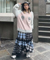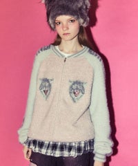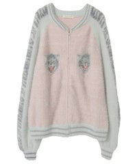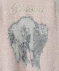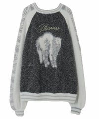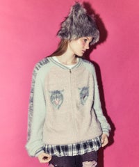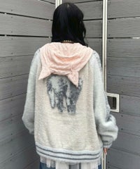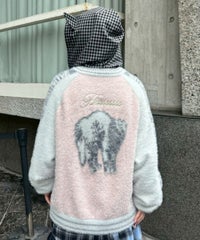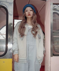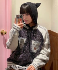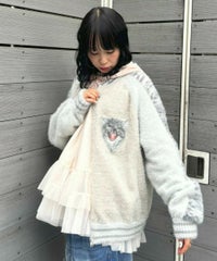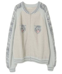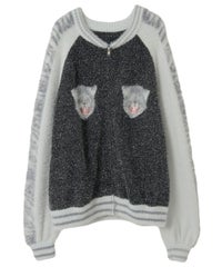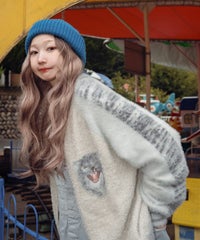 ふわふわと毛足のある糸を全体に使用した、スカジャン型のニットカーディガン。 ジャカード編みで表現した、威嚇猫モチーフがポイントです。 袖部分のラインは、猫ちゃんの縞模様をイメージしたサバトラ風の柄になっております! ハードなイメージが強いスカジャンですが、ソフトな質感と淡いお色味で、デイリー使いしやすいデザインに仕上げました。 素材は、レーヨン・ナイロン・ポリエステル混紡のやわらかなラメシャギー糸を使用。袖やリブの部分には、ラメのないシャギー糸を使用しております。 ・ ・・・・・・・・・ ・・・・・・・・ ・透け感:なし ・伸縮性:あり ・生地の厚さ:やや厚手 ・裏地:なし ・ポケット:あり ・ ・・・・・・・・・ ・・・・・・・・