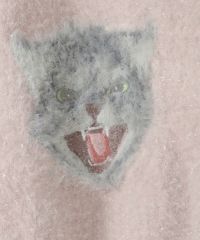 ジャカード編みで表現した、威嚇猫モチーフがポイントです。