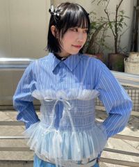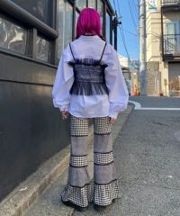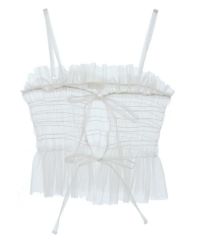 チュール素材を使用したキャミソール。 ランジェリーライクな雰囲気で女性らしい印象に。 前後でご着用可能な仕様でになっています。 ガーリーなスタイリングにはもちろん、ストリートなスタイリングに 組み合わせて小慣れ感のある着こなしもオススメです。