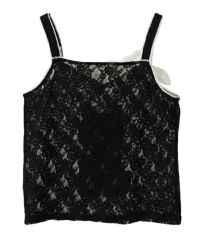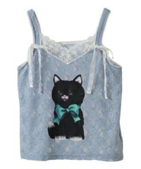 レトロなイラストタッチの黒猫をプリントしたキャミソール。 4種類のレースを使用し贅沢な仕上がりに。 トレンド感のあるコーディネートをお楽しみいただけます。