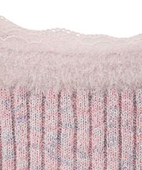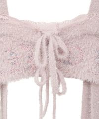 ラメシャギー糸を使用した、キラキラ、ふわふわのニットブラ。 よく見ると、トレンド感のあるブラックレターロゴで”CANDY”と編まれているのがポイントです。 ロゴと背面にはミックスカラーの糸を使用し、グランジ感のある雰囲気に仕上げました。 フロントの紐は、そのまま垂らしてもOK、ブラ本体の内側に通してもOKの2way仕様です。 スタイリングを格上げしてくれる、アイキャッチーなアイテムです。 ・・・・・・・・・・・・・・・・・・・・・・ ・透け感:なし ・伸縮性:あり ・生地の厚さ:普通 ・裏地:なし ・・・・・・・・・・・・・・・・・・・・・・