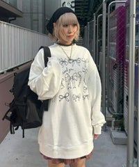 フレンチガーリーなリボンモチーフがキュートなスウェットワンピース。 ワンカラーのカラーリングにすることで幅広いスタイルにマッチします。 程よい肉感のある裏毛素材を使用。 型崩れしにくくロングシーズン着用できます。 衿付きのトップスを組み合わせてガーリーな着こなしはもちろん、 ボトムを組み合わせてカジュアルに着こなしても◎