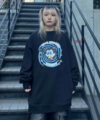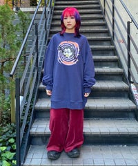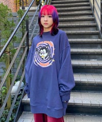 アメコミタッチのグラフィックがPOPなスウェットワンピース。 ゆったりとした身幅とアームホールで、体のラインを拾いにくく、お尻まですっぽり隠れる丈感もうれしい。 程よい肉感のある裏毛素材を使用。 型崩れしにくくロングシーズン着用できます。 トラックパンツやデニムパンツなどをレイヤードしても◎ 落ち感があり、ゆとりのあるシルエットでユニセックスでお楽しみいただける1枚です。