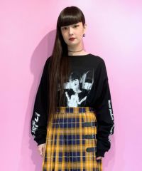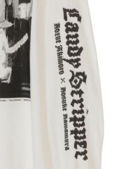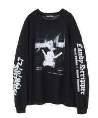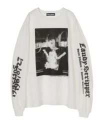 グラフィックデザイナー・河村康輔氏が写真をシュレッダー加工したユニセックスなシルエットのロンT。 右袖にはブランド創設年月日と秋元梢の生年月日が重なったグラフィック、左袖にはCANDY STRIPPER、秋元梢、河村康輔さんの名前をシュレッダー加工し重ねたグラフィックをプリント。 一枚で着たり、重ね着アイテムのインナーにしたり着回しのきく一枚。
