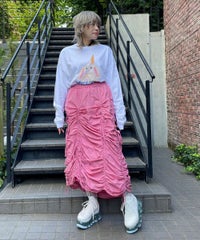 袖口はリブ付きで、1枚で着たり、下にボトムを合わせたりと着回ししやすい1枚。