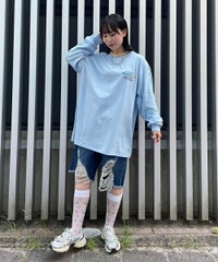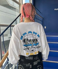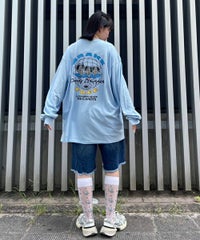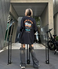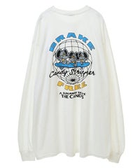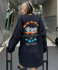 キャンディらしいアメコミ風にアレンジしたマウスモチーフの グラフィックをバックスタイルにプリントしたロンT。 フロント部分にはロゴをプリントしアクセントをプラス。 6.0オンスのオープンエンド糸を使用。 袖口はリブ切替が施されており、スッキリとした着用感を得られます。 程よいオーバーシルエットなサイジングで1枚ではもちろん、 レイヤードスタイルにも最適。 幅広いシーズンでご着用いただける万能アイテムです。