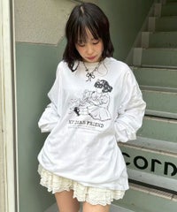 カルトタッチにアレンジした女の子×くまのぬいぐるみのグラフィックのロンT ●ワントーンで着回ししやすいカラーリングに仕上げました ●程よい厚みの17/-天竺を使用 ●袖口はホールド感の高いリブ仕様 ●様々な着こなしに対応できるオーバーシルエットなサイジング ●腰回りをカバーできる安心感のある丈 ●ユニセックスでご着用いただけます ・・・・・・・・・・・・・・・・・・・・・・ ・透け感:なし ・伸縮性:あり ・生地の厚さ:普通 ・裏地:なし ・・・・・・・・・・・・・・・・・・・・・・
