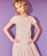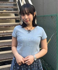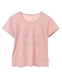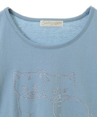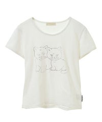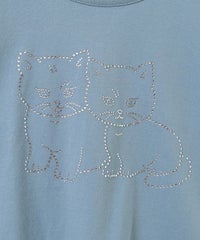 子猫モチーフをラインストーンでプリントしたコンパクトTシャツ。 細身のサイジングでメイントップスとしてはもちろん、 キャミワンピース等のインナーにも最適。 オーバーシルエットなボトムを組み合わせると トレンド感のあるバランスをお楽しみいただけます。 シーズンレスで活躍する万能アイテムです。